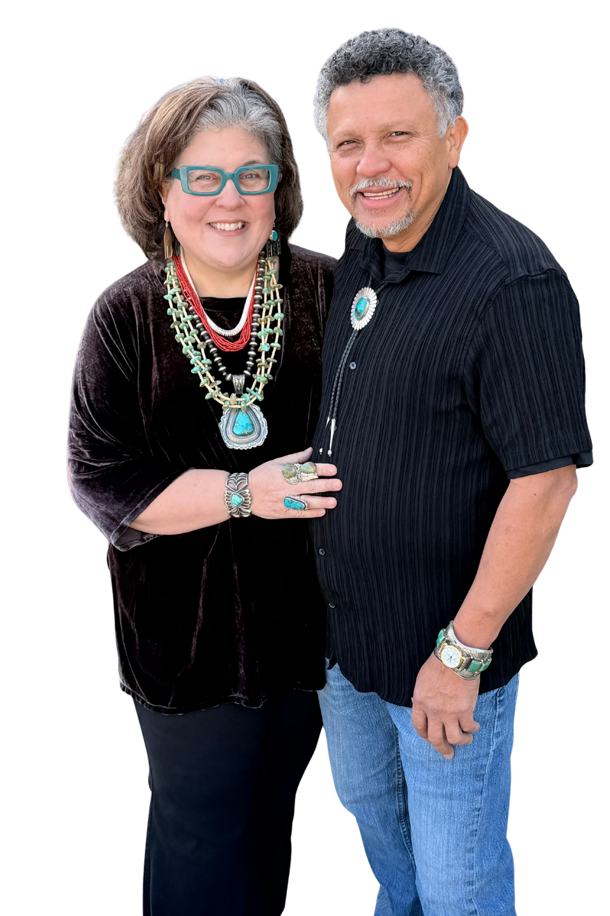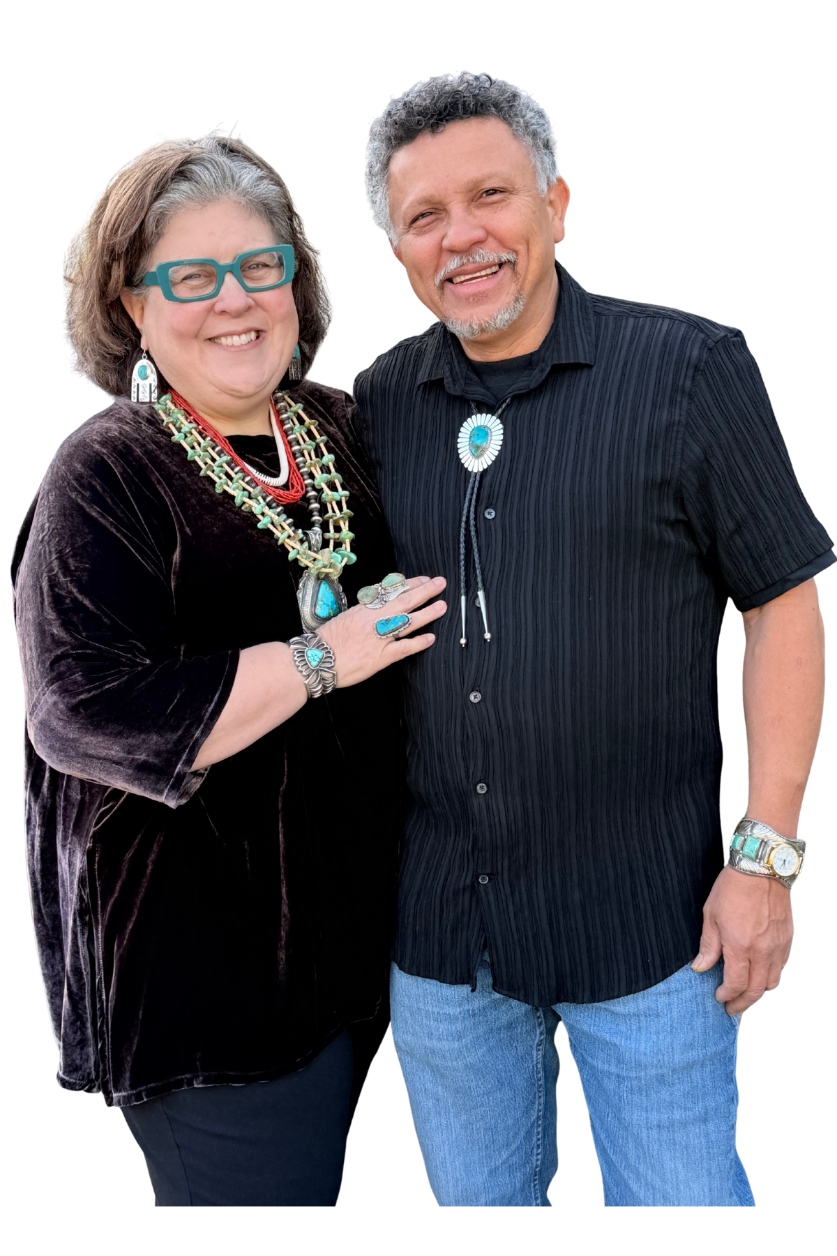 He was the driving force behind starting Navajewelry, giving Suzanne not only the idea for the business but also the daily support, encouragement, and logistical help to keep it running smoothly. He’s also discovered his own passion for Native American jewelry, exponentially increasing his wardrobe of watches, rings, necklaces and bolo ties! This Costa Rican cowboy looks amazing representing Southwestern style!